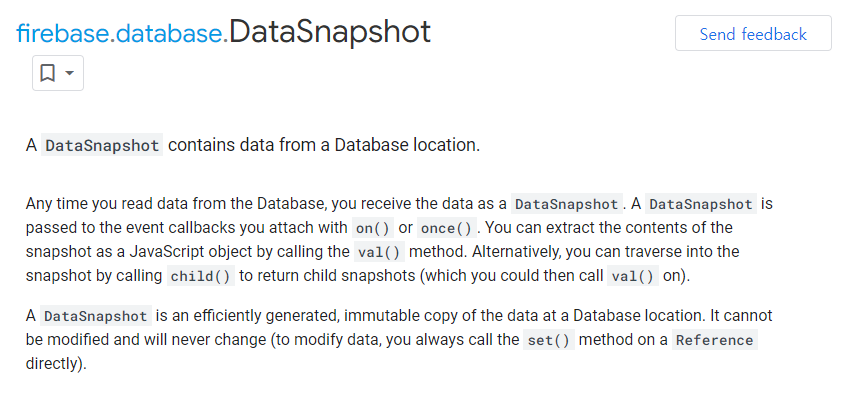 파이어 베이스를 처음 배우면서 스냅샷이라는 단어를 알게 되었다. 파이어 스토어에서 데이터를 부르면 바로 원본 데이터를 가져오는 것이 아니라 스냅샷을 가져온다. 잠시 찾아본 내용으로는 정확히 정의 내릴 수는 없지만 A snapshot can be defined as a system state at a specific point of time in a computer system. 위키의 정의처럼 한 특정 시점을 찍어서 가져온 것이라고 한다. 그렇다고 복사본은 아니고 사용하려면 data화를 시켜야한다.