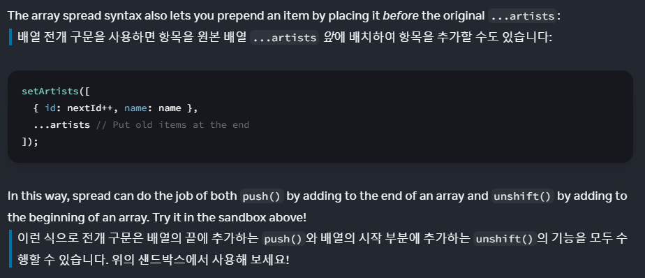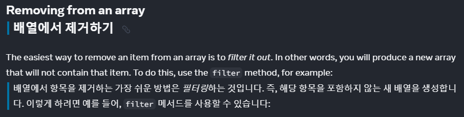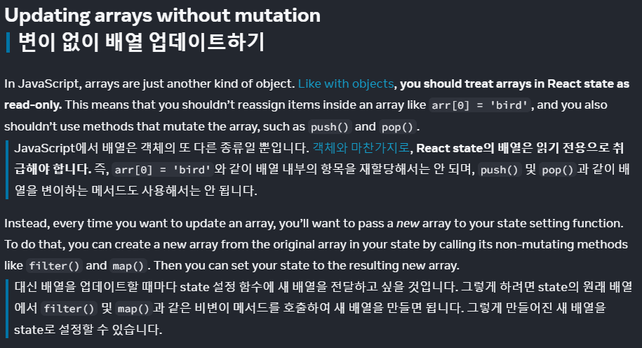 역시 리액트 뭐 사용하라고 배열 함수까지 알려준다. 사실 이전 프로젝트에서 sort를 썼는데 복사하고 쓰라고 한다.
