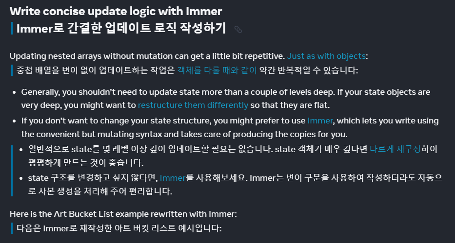 변화를 많이 가져야하는 경우면 useImmer를 사용해야될 듯하다. useState보다