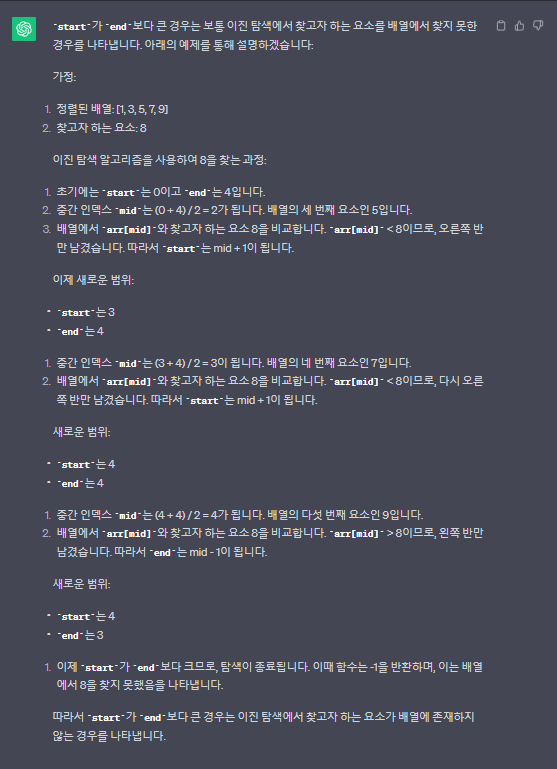 처음에 이해가 안되었던 부분이 아무리 못찾아도 start가 end보다 클 수 있나 싶었는데 역시 chatGPT는 똑똑했다.