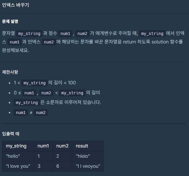 2-1) 프로그래머스-인덱스 바꾸기 를 splice 함수를 통해서 풀어보겠다.