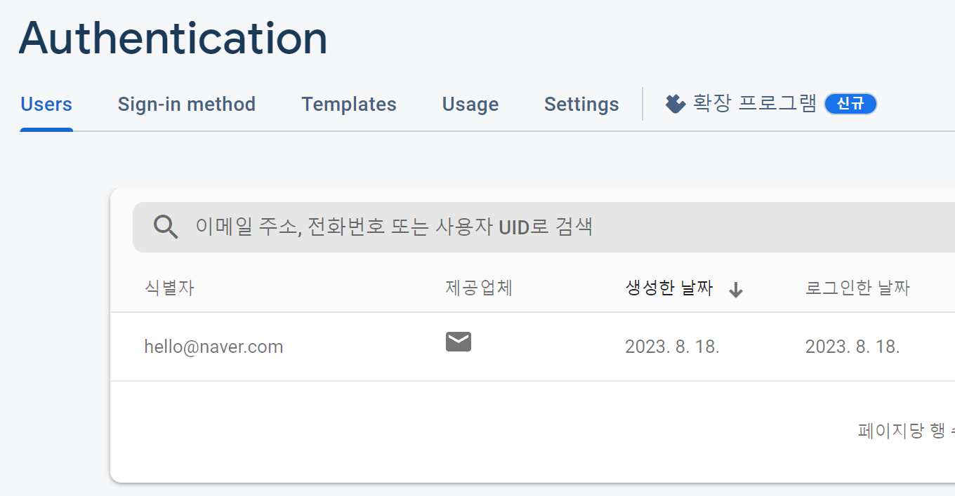 여기서 이메일/비밀번호 로그인을 허용해줘야한다. 소셜 로그인도 마찬가지이다. 본인이 허용하고 싶은 로그인 방식만 설정할 수 있다.